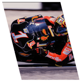 Макс Бьяджи выигрывает 4 мировых титула в классе 250 кубических сантиметров и тестирует первые перчатки Full Pro с карбоновым волокном и кевларовыми протекторами.