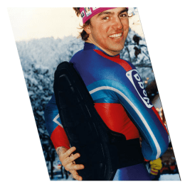 Кристиан Гедина, Дебора Компаньоли и вся итальянская команда горнолыжников «Valanga Azzurra» впервые использовали защиту для спины на мировом горнолыжном кубке. С этого момента защиту для спины стали использовать все представители зимних экстремальных видов спорта.